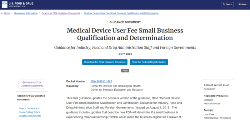 近日,F(xiàn)DA更新了有關(guān)小企業(yè)資質(zhì)申請的指南文件Medical Device User Fee Small Business Qualification and Determination,在指南中詳細(xì)說明了“小企業(yè)注冊年費(fèi)減免”的條件。