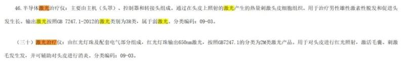 激光生發(fā)儀,主要通過在頭皮上照射的激光產(chǎn)生的熱量刺激頭皮細(xì)胞組織,用于刺激毛發(fā)生長(zhǎng),一般用的是2M類或3R類激光。國家藥監(jiān)局醫(yī)療器械標(biāo)準(zhǔn)管理中心在《2018年醫(yī)療器械產(chǎn)品分類界定結(jié)果匯總》及《2023年第三次醫(yī)療器械產(chǎn)品分類界定結(jié)果匯總》中,分別對(duì)此類產(chǎn)品的預(yù)期用途及分類進(jìn)行明確:作為第二類醫(yī)療器械管理,分類編碼09-03。產(chǎn)品的臨床評(píng)價(jià)方式為同品種對(duì)比。